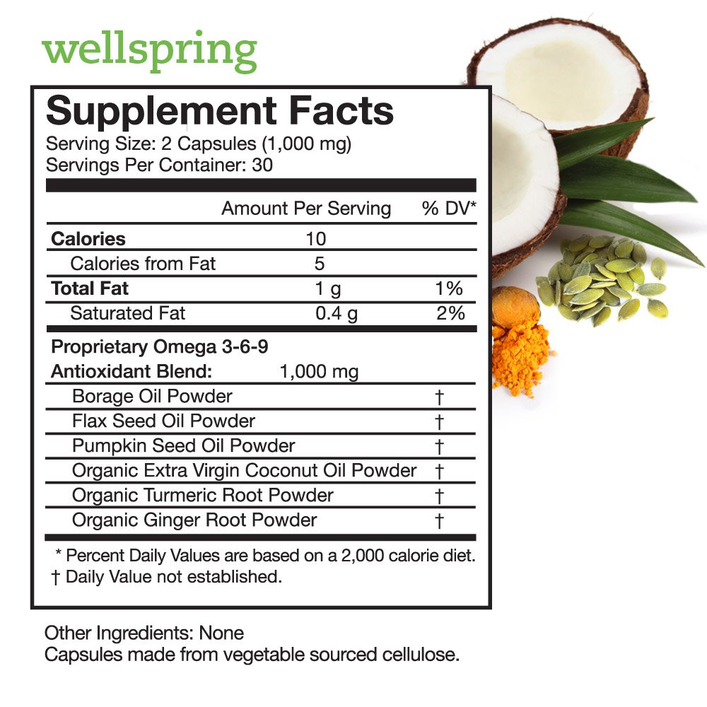 Wellspring provides nourishing plant-based essential fatty acids, along with joint-soothing organic turmeric root and calming organic ginger root. Add Wellspring to your day and your heart and joints will thank you.